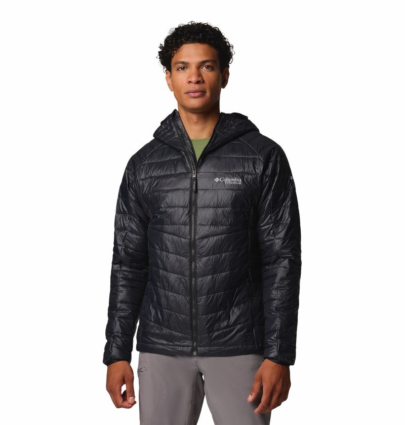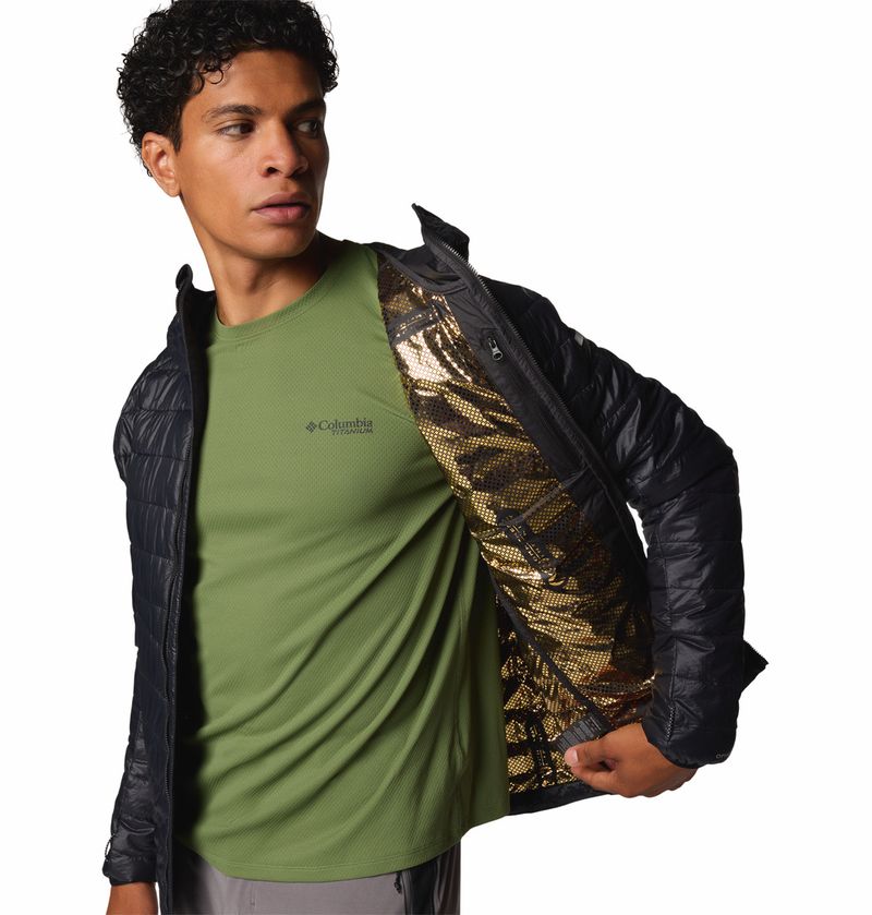 Casaca Para Hombre Sintética Con Capucha Platinum Peak™ II Negra Columbia.Una casaca cálida, con aislamiento y relleno sintético reciclado para las aventuras de invierno.