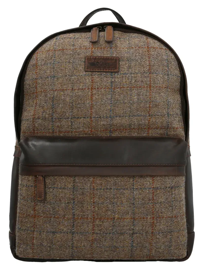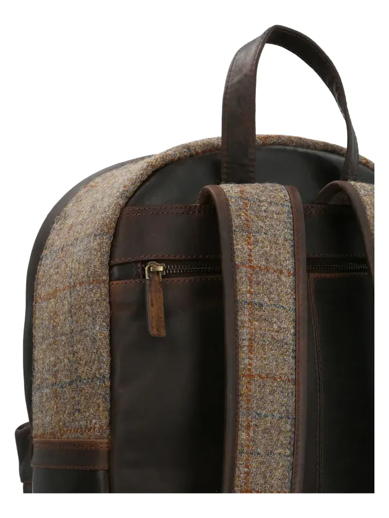 Maletín Para Hombre Lana de Oveja Harris Tweed Back Verde Rockford. Mochila fabricada a mano con cuero 100% natural y Harris Tweed Escocés, ambos de primera calidad, gran duración y resistencia, y forro interior 100% poliéster reciclado.