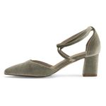 Zapato Para Mujer Velvet Cornnelia Verde Oliva Hush Puppies.Si buscas una silueta clásica y elegante, estos zapatos son perfectos para ti. Inspirados en el romanticismo moderno y la elegancia de los años 80 donde se popularizó esta fibra comunmente conocida como tercipelo, los Cornnelia son tu opción ideal para cualquier tipo de evento desde un plan casual hasta un cocktail de noche. Cruzados en el empeine, agarre en el tobillo y un taco con altura de 5.5 son tu opción ideal para estar comoda todo el día y toda la noche.